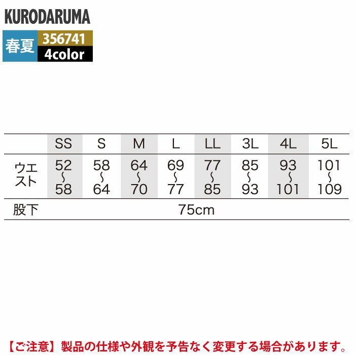 クロダルマ 作業服 春夏用 356741 レディースカーゴパンツ 3L-5L