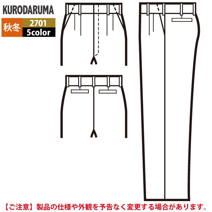 クロダルマ 作業服 秋冬用 2701 スラックス(ツータック) 91-120