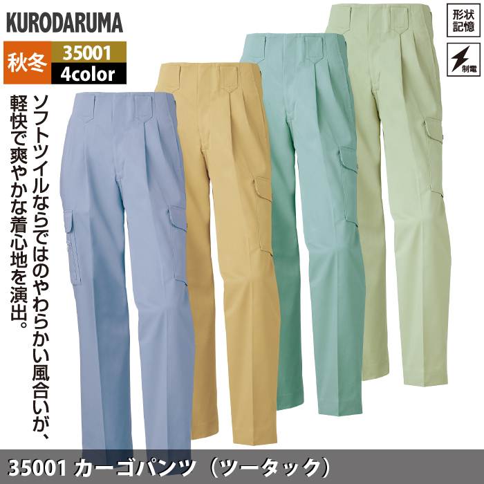クロダルマ 作業服 秋冬用 35001 カーゴパンツ(ツータック) 70-88