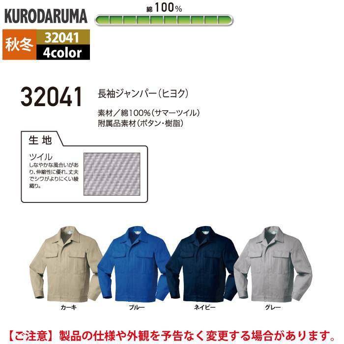 クロダルマ 作業服 秋冬用 32041 長袖ジャンパー(ヒヨク) S-LL