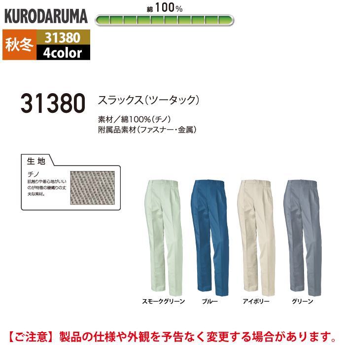 作業服 作業着 クロダルマ 作業服 秋冬用 31380 スラックス(ツータック) 91-120