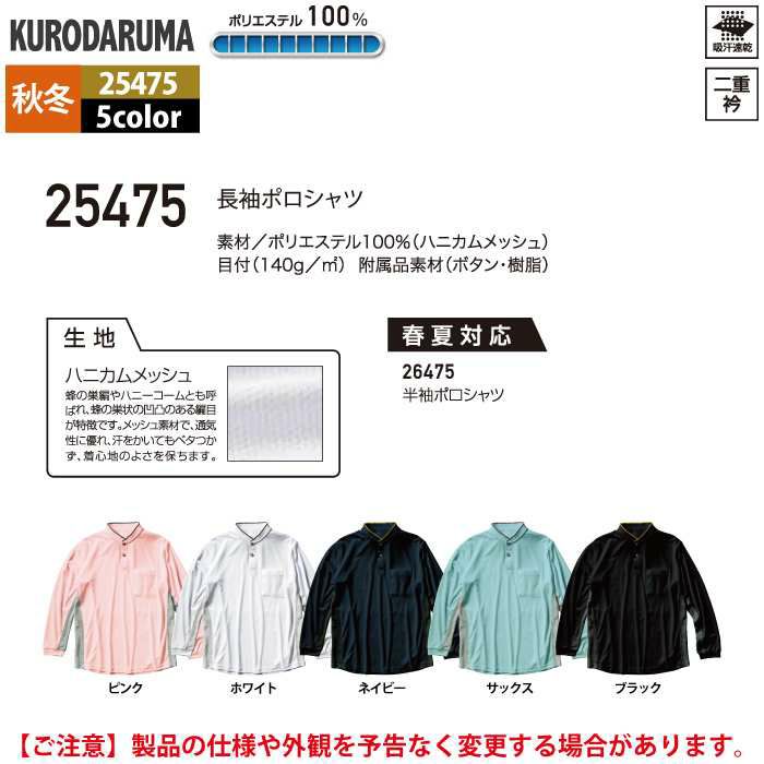クロダルマ 作業服 秋冬用 25475 長袖ポロシャツ 3L-5L