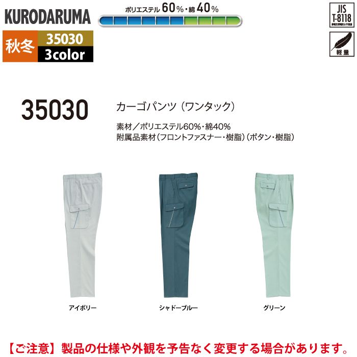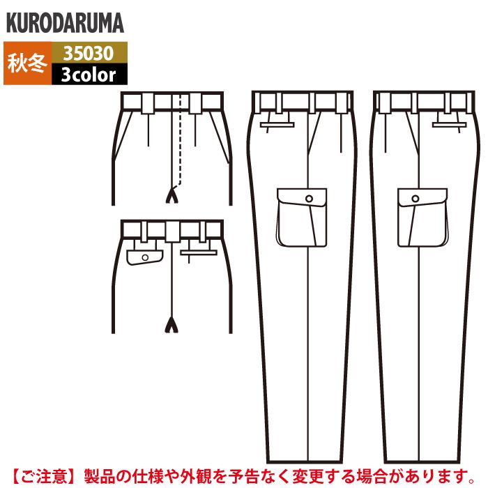 クロダルマ 作業服 秋冬用 35030 カーゴパンツ(ワンタック) 70-88