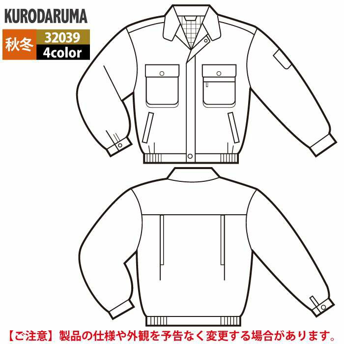 クロダルマ 作業服 秋冬用 32039 長袖ジャンパー S-LL
