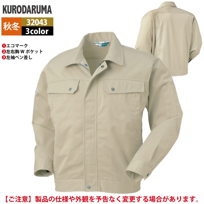 クロダルマ 作業服 秋冬用 32043 長袖ジャンパー S-LL