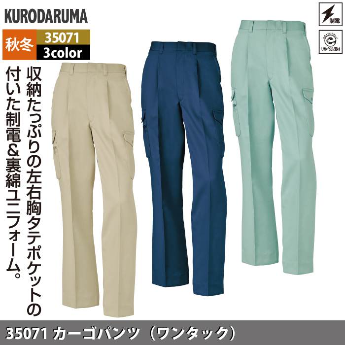 作業服 作業着 クロダルマ 作業服 秋冬用 35071 カーゴパンツ(ワンタック) 91-120