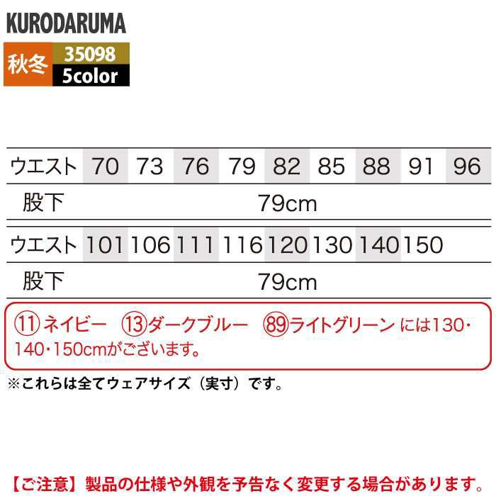 クロダルマ 作業服 秋冬用 35098 カーゴパンツ(ワンタック) 70-88