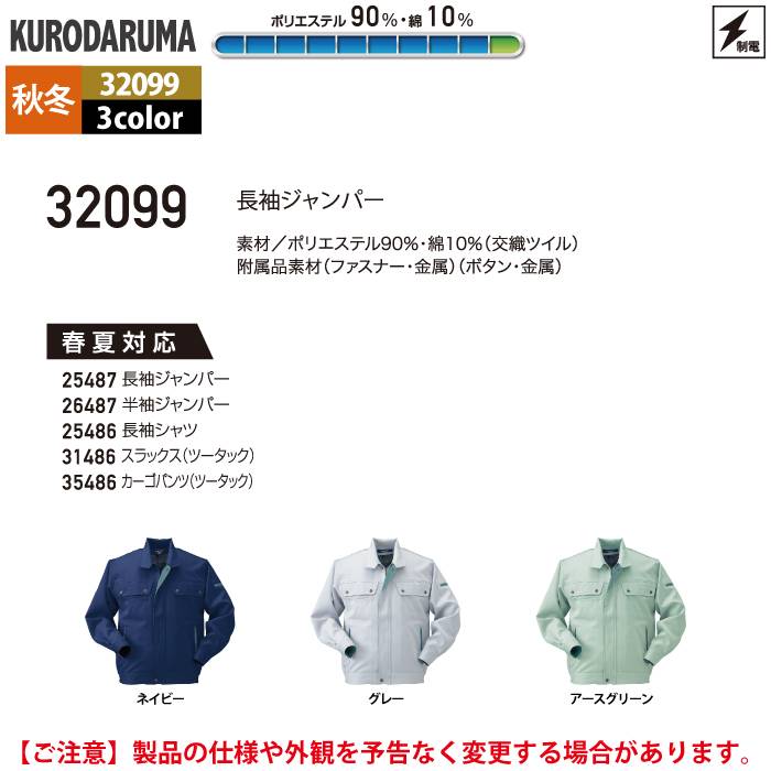 クロダルマ 作業服 秋冬用 32099 長袖ジャンパー S-LL
