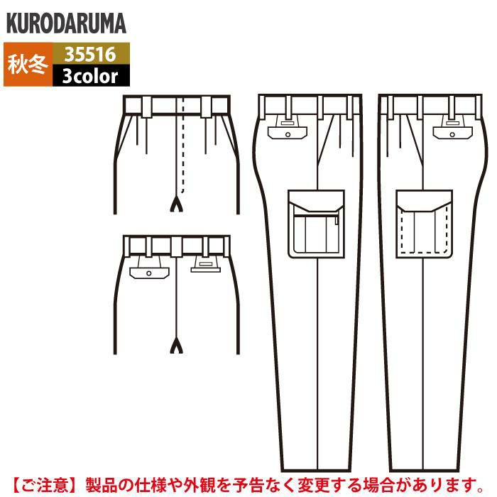 クロダルマ 作業服 秋冬用 35516 カーゴパンツ(ツータック) 70-88
