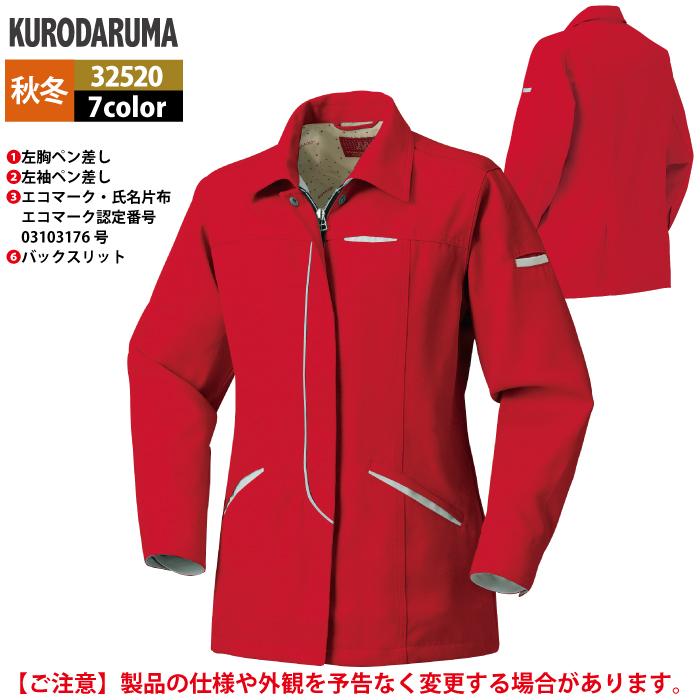 作業服 作業着 クロダルマ 作業服 秋冬用 32520 レディース長袖スモック 3L-4L