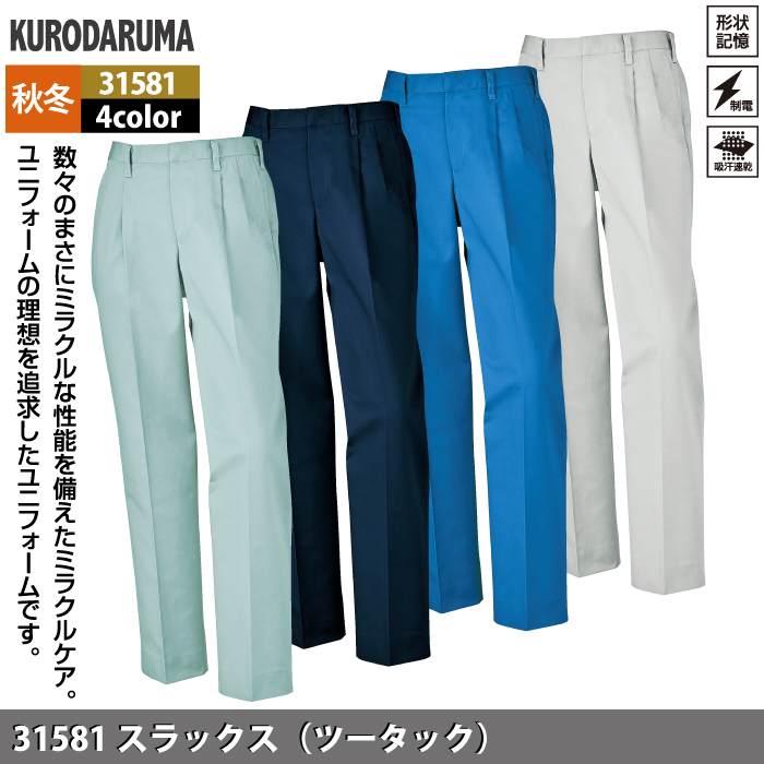 クロダルマ 作業服 秋冬用 31581 スラックス(ツータック) 70-88