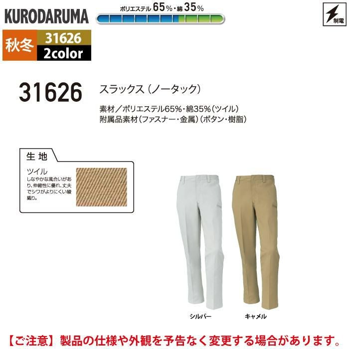 作業服 作業着 クロダルマ 作業服 秋冬用 31626 スラックス(ノータック) 73-88