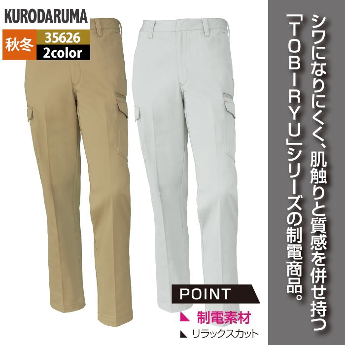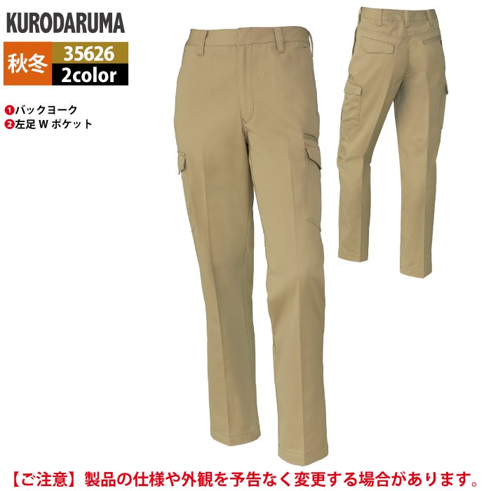 クロダルマ 作業服 秋冬用 35626 カーゴパンツ(ノータック) 73-88