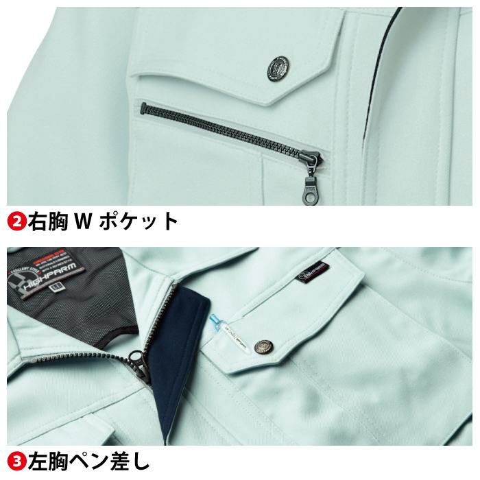 ◇機能:ストレッチ素材・背当メッシュ・右胸Wポケット・左胸ペン差し・左袖ペン差し・脇ポケット逆玉・ファスナー金属・ボタン金属
