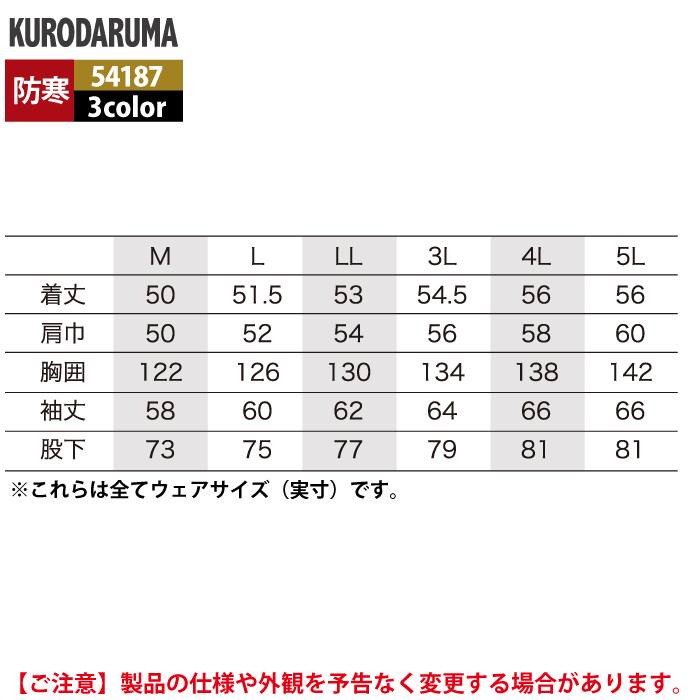 クロダルマ 作業服 防寒着 秋冬用 54187 防寒ツナギ M-LL