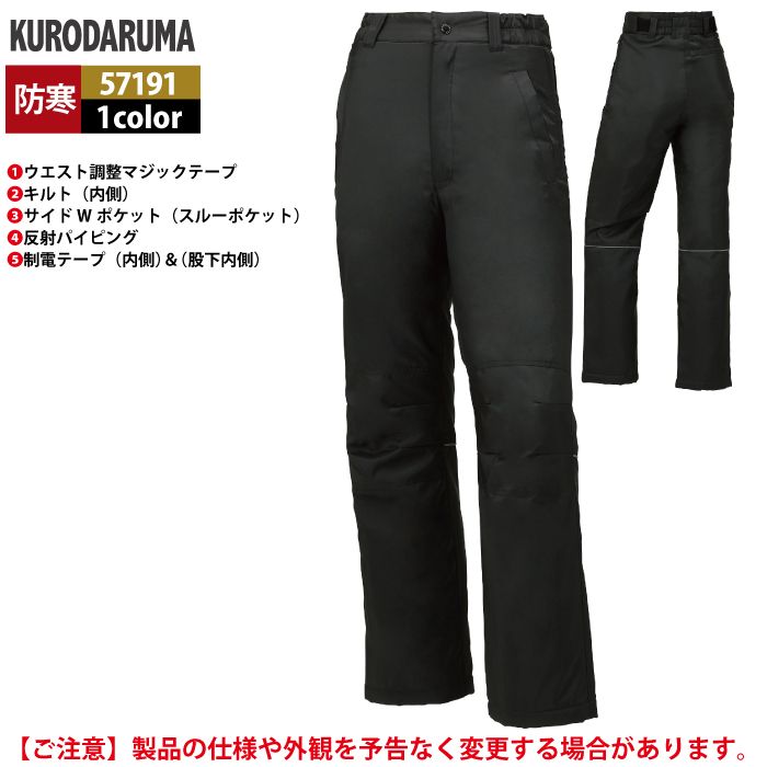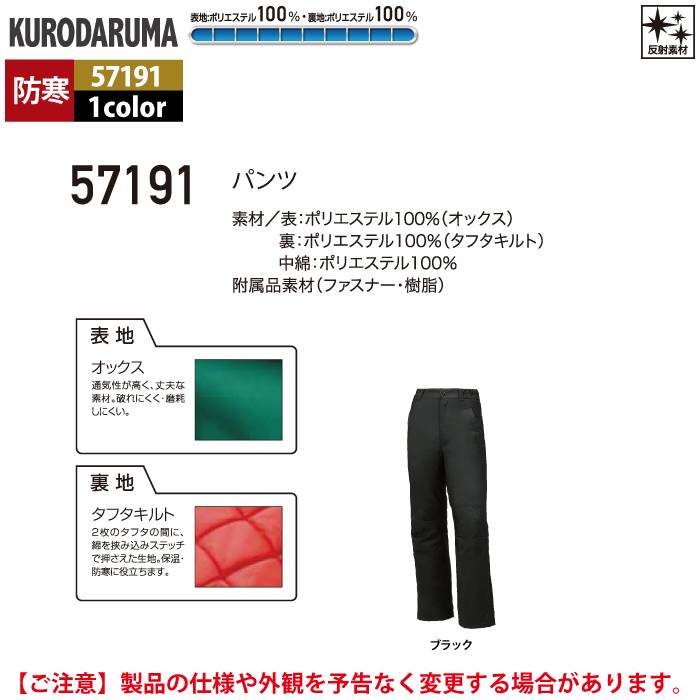 作業服 作業着 クロダルマ 作業服 防寒着 秋冬用 57191 パンツ 3L-5L