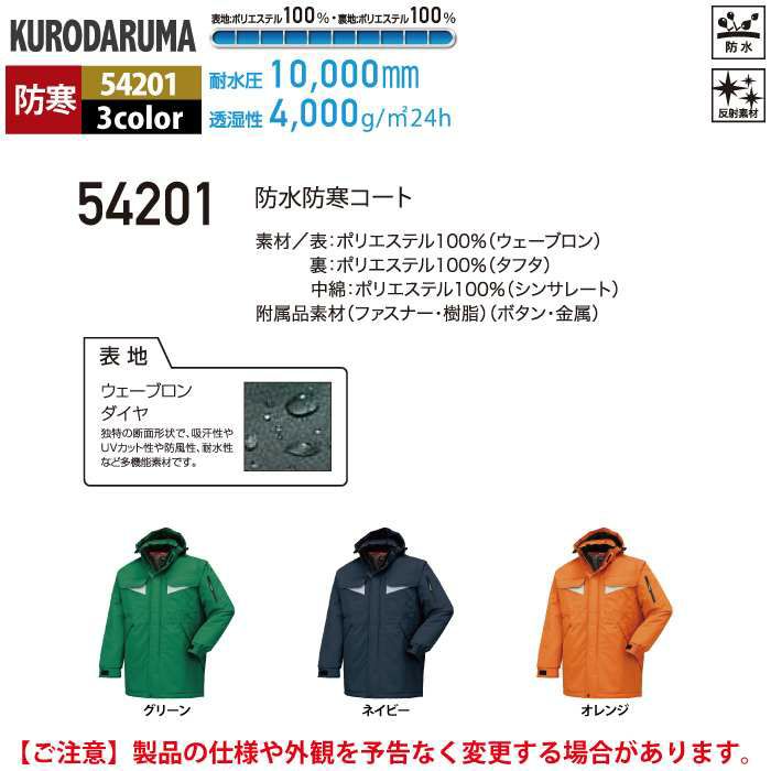クロダルマ 作業服 防寒着 秋冬用 54201 防水防寒コート S-LL