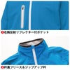 ◇機能:右胸反射リフレクター付ポケット・衿裏フリース・ジップアップ衿・左内ペン差し・袖口ゴム・ドローコード・ストレッチニット・ファスナー樹脂