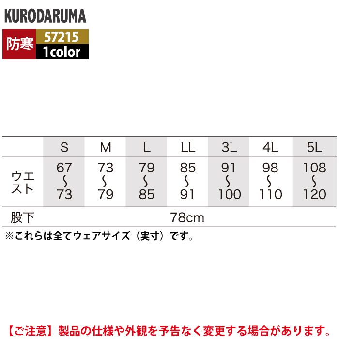 作業服 作業着 クロダルマ 作業服 防寒着 秋冬用 57215 防水防寒パンツ 3L-5L