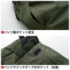 ◇機能:パンツ脇ポケット逆玉・パンツマジックテープ付ポケット(右後)・パンツ裏地タフタ・右脇ファスナーポケット・ファスナー樹脂