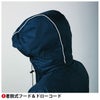 ◇機能:着脱式フード・ドローコード・衿裏ブロックフリース・右胸ポケット(反射パイピング・反射スライダー付)・上下開閉式ファスナー・マジックテープ・右脇Wポケット(スルーポケット)・左袖ペン差し・袖マジックテープ・裾マジックテープ・右後ポケット・ファスナー樹脂・裏地アルミ蒸着メッシュキルト(上部)・タフタ(下部)