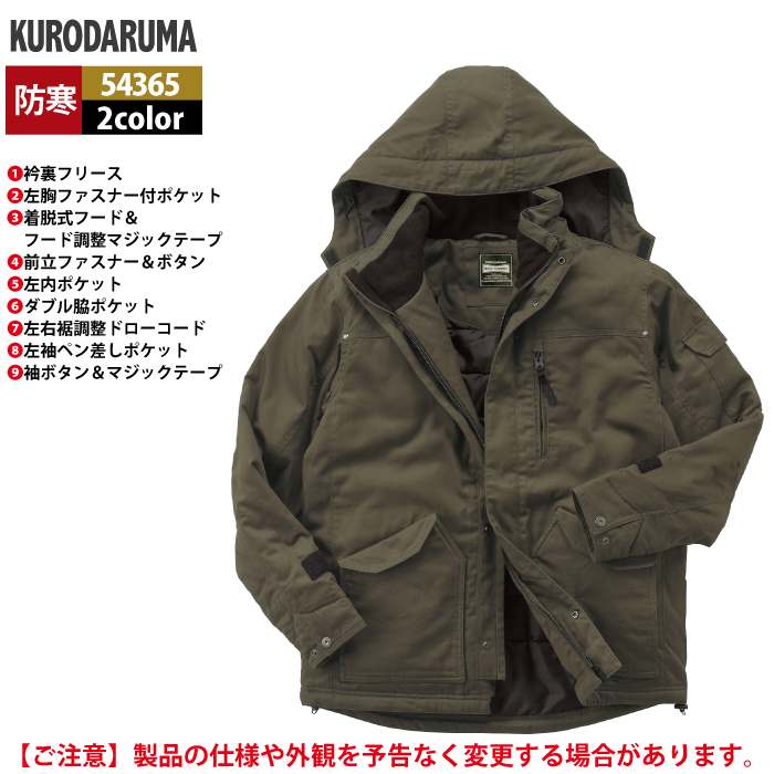 作業服 作業着 クロダルマ 作業服 防寒着 秋冬用 54365 防寒コート 3L-5L