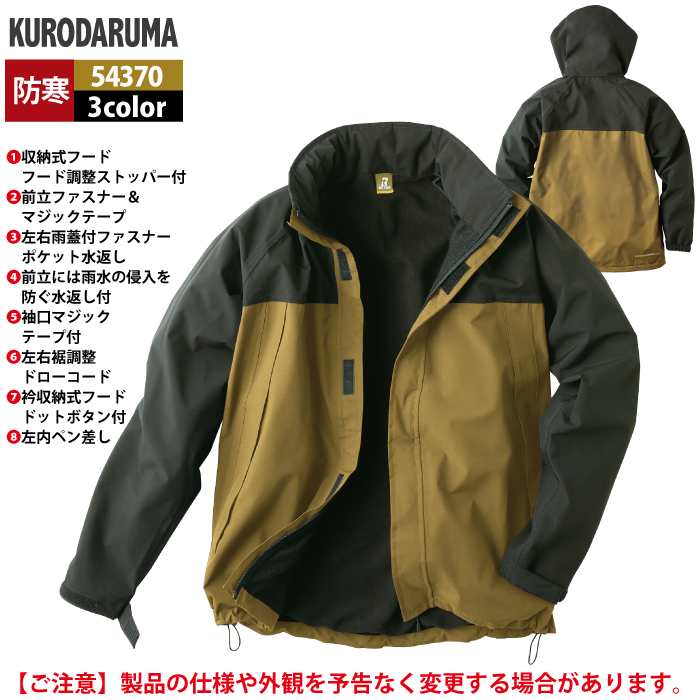 作業服 作業着 クロダルマ 作業服 防寒着 秋冬用 54370 防水防寒ジャケット 3L-5L