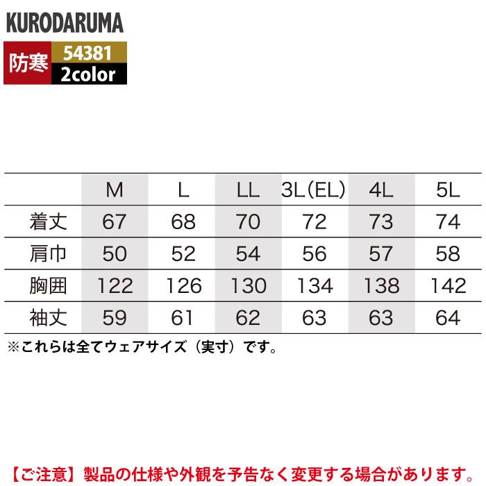 クロダルマ 作業服 防寒着 秋冬用 54381 ジャンパー 3L-5L