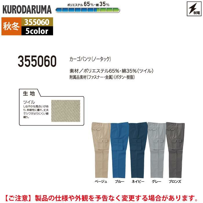 作業服 作業着 クロダルマ 作業服 秋冬用 355060 カーゴパンツ(ノータック) 91-116