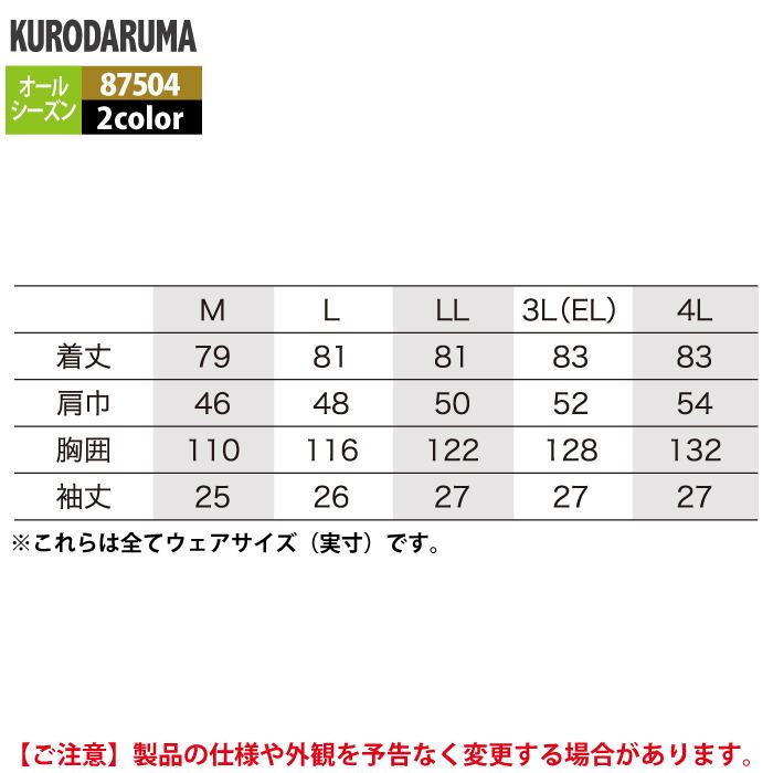 作業服 作業着 クロダルマ 作業服 オールシーズン 87504 半袖シャツ(ボタンダウン) M-LL