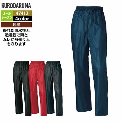 作業服 作業着 クロダルマ 作業服 レインウェア オールシーズン 47412 レインパンツ 3L-5L