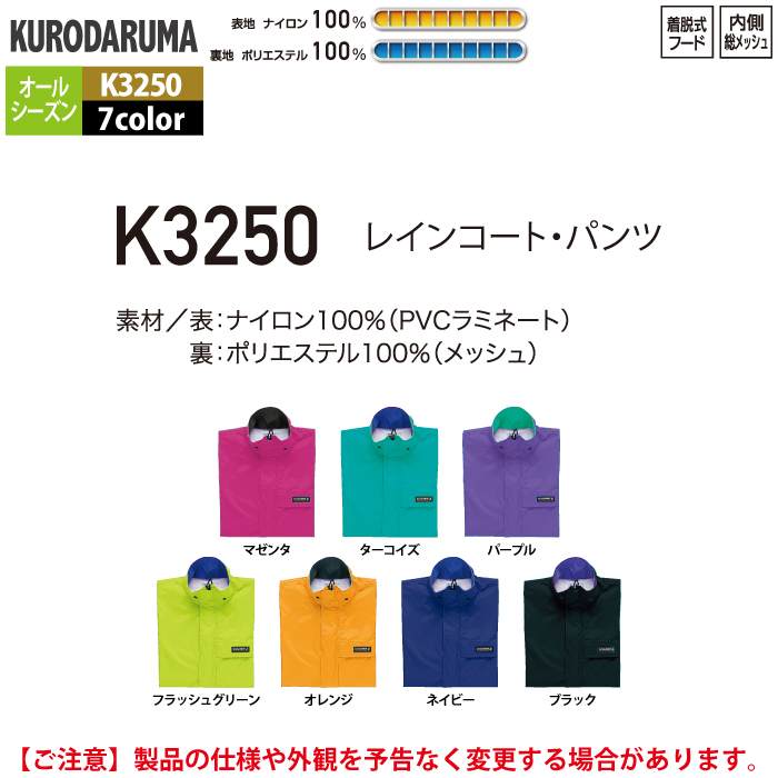 クロダルマ 作業服 レインウェア オールシーズン K3250 レインコートパンツ 3L-5L