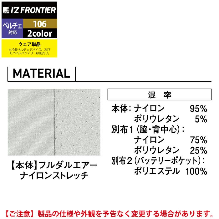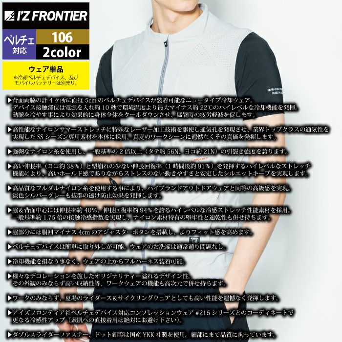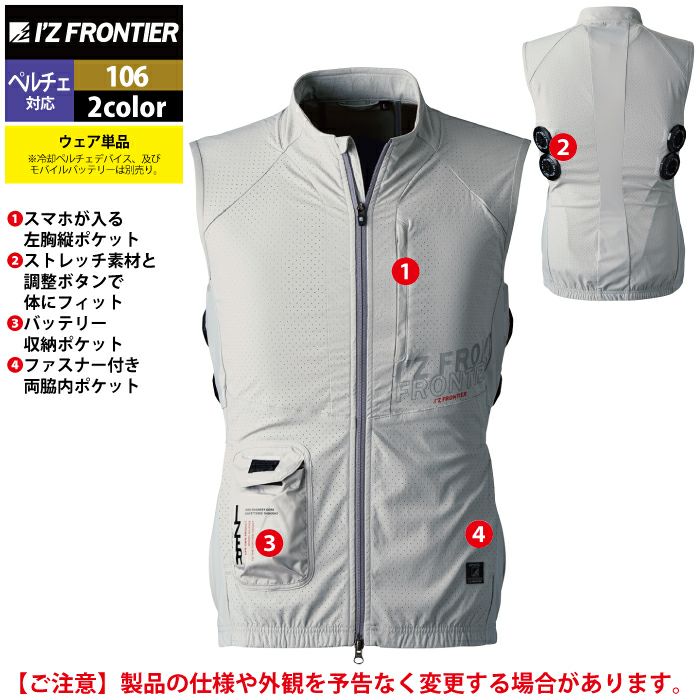 アイズフロンティア 作業服 作業着 106 冷却ペルチェ専用アウターワークベスト S-4Lペルチェ対応 春夏