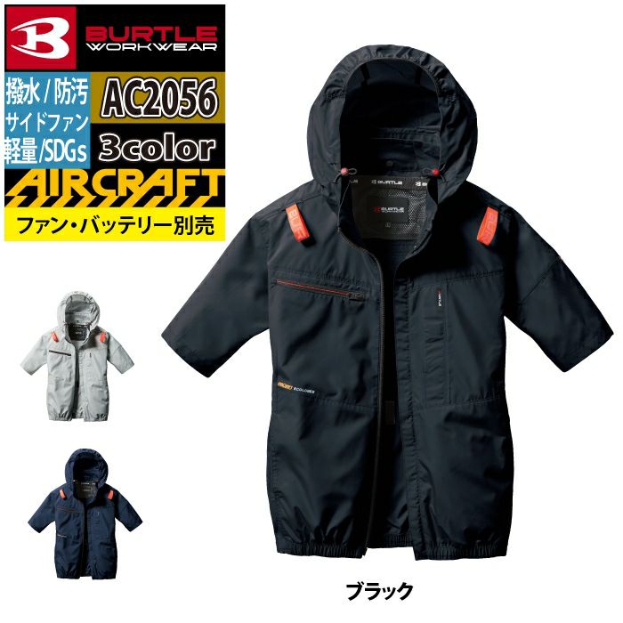ユニセックス SDGs フード付き バートル BURTLE 作業着 2025春夏新作 エアークラフト AC2056 AC半袖ブルゾン S-XXL 作業服 単品 撥水 サイドファン