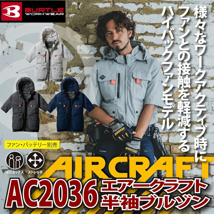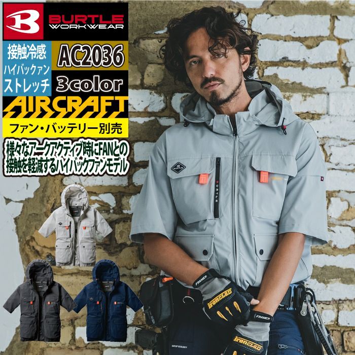 バートル BURTLE 作業着 2025春夏新作 エアークラフト AC2036 AC半袖ブルゾン 3XL 作業服 単品 冷感 ハイバック