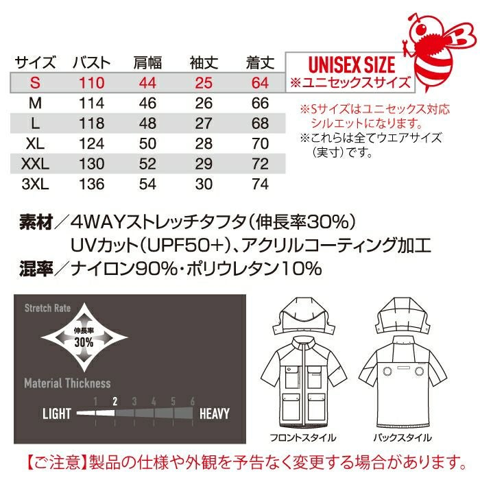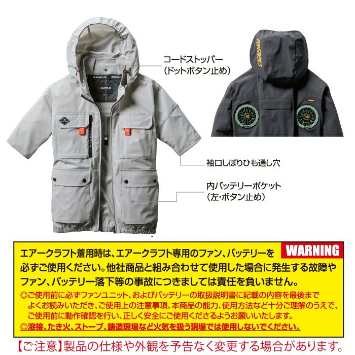 ユニセックス UV フード付き バートル BURTLE 作業着 2025春夏新作 エアークラフト AC2036 AC半袖ブルゾン 3XL 作業服 単品 冷感 ハイバック