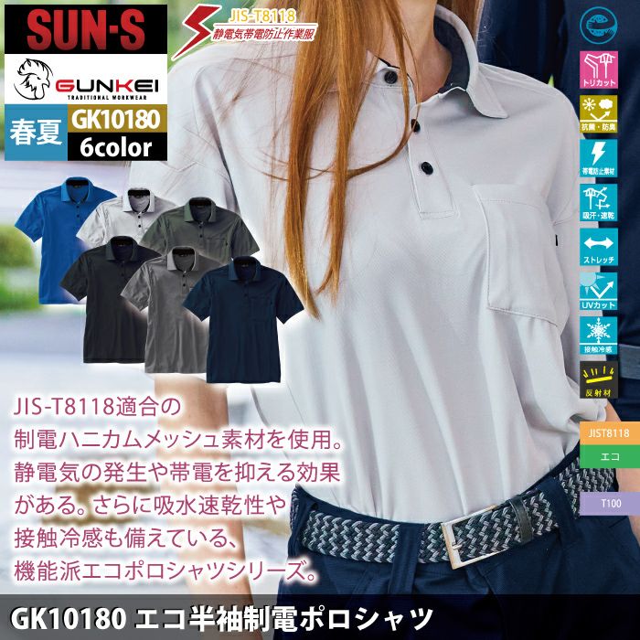 サンエス 作業服 春夏 GK10180 エコ半袖制電ポロシャツ 3L 作業着