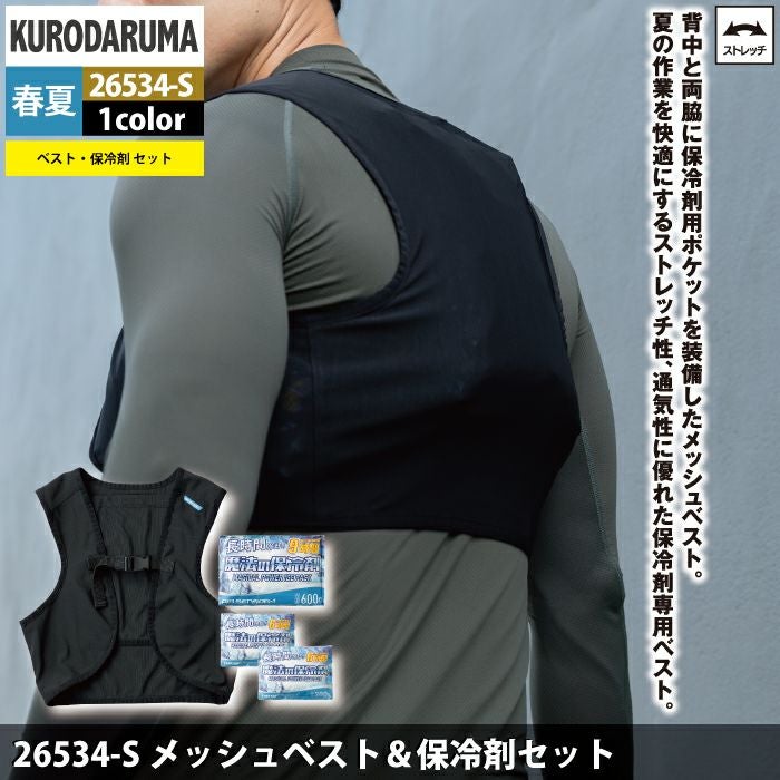 作業服 作業着 春夏 クロダルマ 作業服 春夏 26534-S メッシュベストと保冷剤セット S-O 作業着