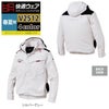 ◇機能:ロゴ入りフロントファスナー・両胸マチ付きポケット・フードストレッチパイピン・袖ペン差し・耳部分綿冷感コンプレッション・ダクト・ランヤード取り出し口・フード取り外し・ケーブル止めマジックテープ・左右胸ポケットコード通し穴・ファスナー付きバッテリーポケット