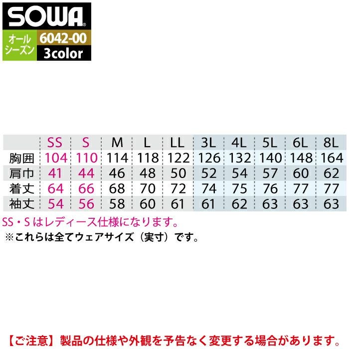 桑和 SOWA 作業服 作業着 作業ズボン 桑和 SOWA 作業服 6042-00 長袖ブルゾン 6L 作業着 春夏