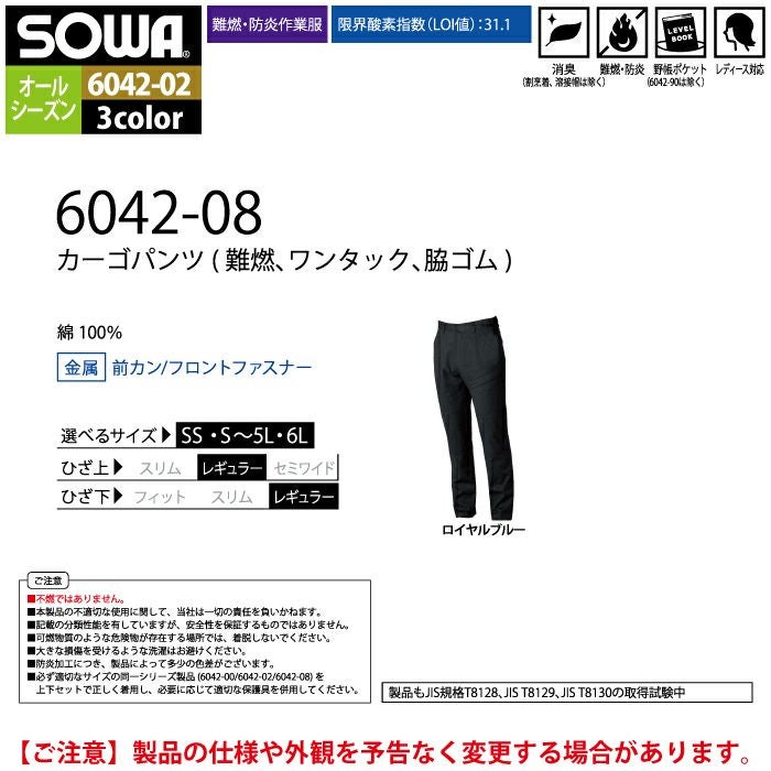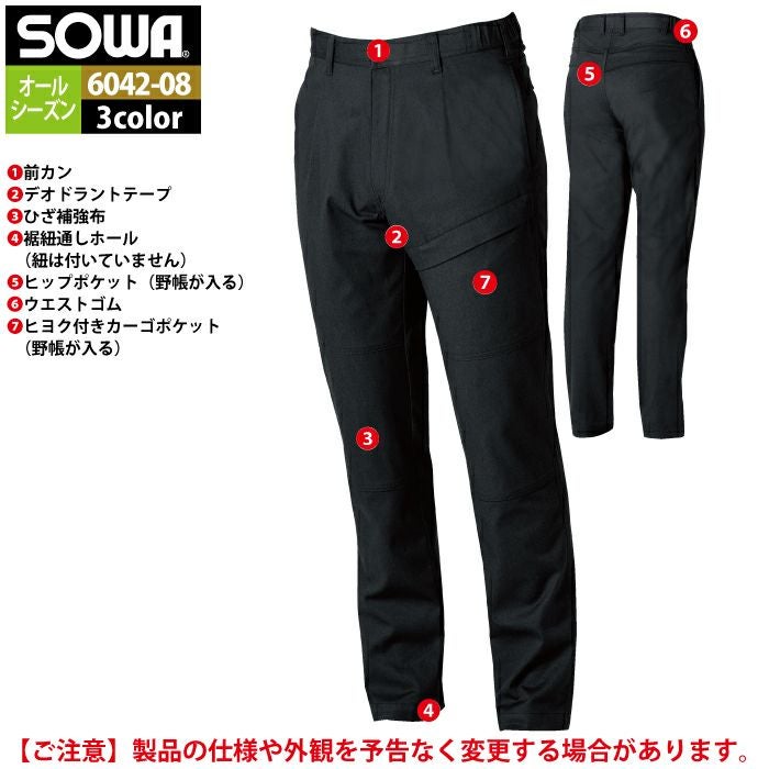 桑和 SOWA 作業服 作業着 作業ズボン 桑和 SOWA 作業服 作業ズボン 6042-08 カーゴパンツ 6L 作業着 春夏