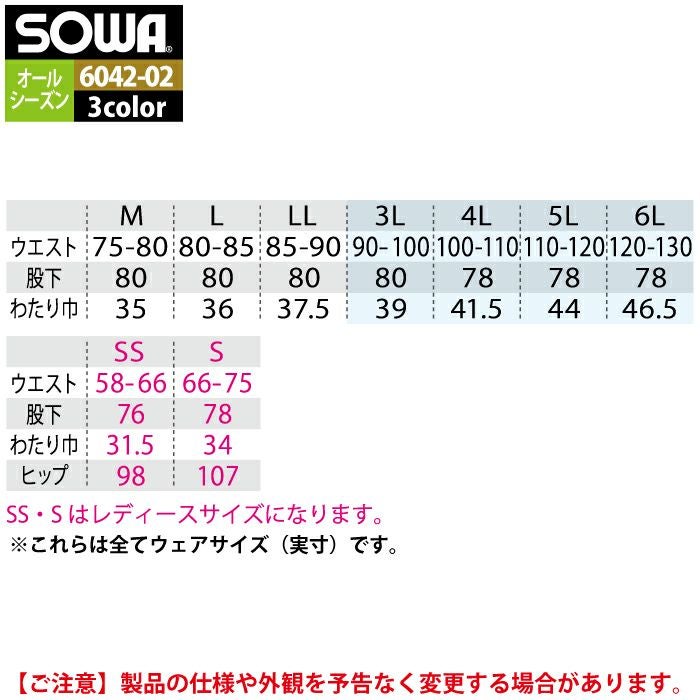 桑和 SOWA 作業服 作業ズボン 6042-08 カーゴパンツ 6L 作業着 春夏