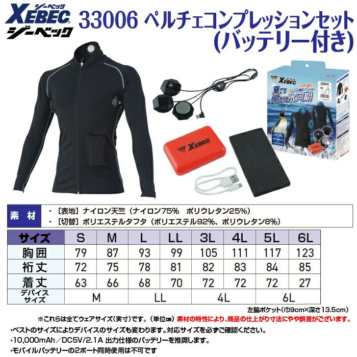 ペルチェ ジーベック 作業服 作業着 ペルチェ対応ウェア ジーベック XEBEC 作業服 春夏 33005 ペルチェコンプレッションセット(バッテリー付き) S-LL 作業着