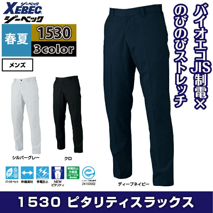 ジーベック XEBEC 作業服 春夏 1530 ピタリティスラックス 70-100 作業ズボン 作業着
