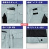 ◇機能:バイオペット・伸縮素材・帯電防止・男女兼用・NEWピタリティ・JIS T8118帯電防止作業服適合商品・のびのびストレッチ・左胸ポケット脇ペン差し付・左袖ペン差し・長財布もスッポリ入る深めのファスナーポケット・胸フラップポケットは面ファスナー仕様・裾は2段階に調節できるアジャスター付・左右内ポケット