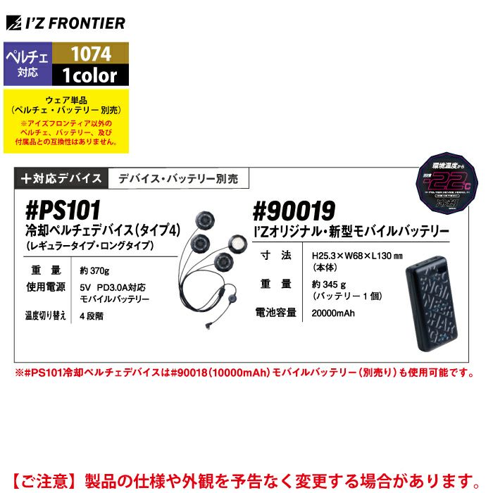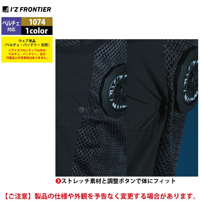 アイズフロンティア 空調服 2025 春夏 新作 作業服 アイズフロンティア 作業服 2025春夏新作 ペルチェ対応ウェア 1074 冷却ペルチェ4個タイプ単品 S-XXL 空調服 作業着 おしゃれ
