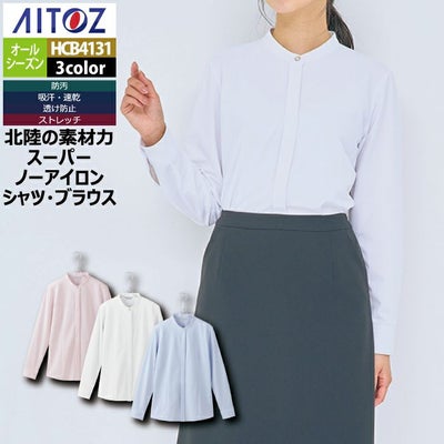オフィス 事務 ビジネスウェア オフィスウェア ピエ HCB4131 長袖スタンドカラーブラウス 17号-19号 オールシーズン アイトス Aitoz