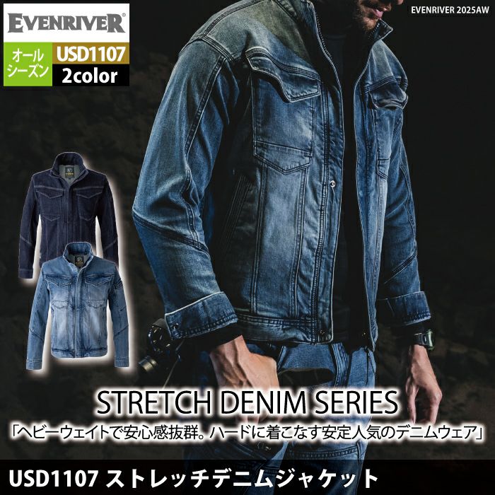 イーブンリバー EVENRIVER 作業服 2025秋冬新作 USD1107 ストレッチデニムジャケット S-LL 作業着 おしゃれ