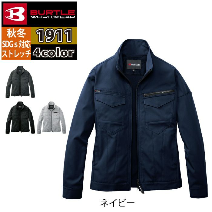 ユニセックス ストレッチ テーパード バートル BURTLE 作業着 2025秋冬新作 1911 ジャケット S-LL 作業服 おしゃれ JIS適合制電 SDGs