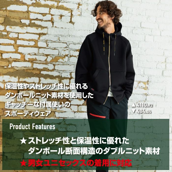 ユニセックス ストレッチ バートル BURTLE 作業着 2025秋冬新作 4110 エアーテックジップフーディ M-XL 作業服 おしゃれ 保温 ドライ